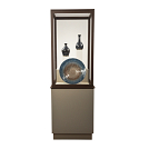 - 1/4” tempered glass framed vitrine features easy access hinged door