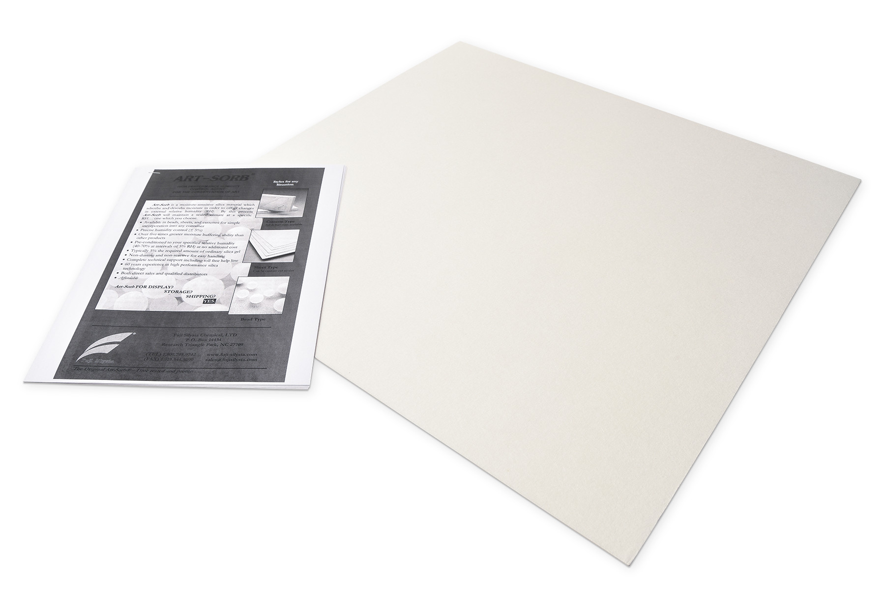 Cut this single sheet of Art Sorb Silica to size and place in a frame or display case. The nonwoven sheet of polyethylene/polypropylene fibers is impregnated with fine particles of Art Sorb silica that absorb and repel moisture to stabilize moisture and offset RH. The material can be reconditioned to the desirable RH level and then reused as needed.