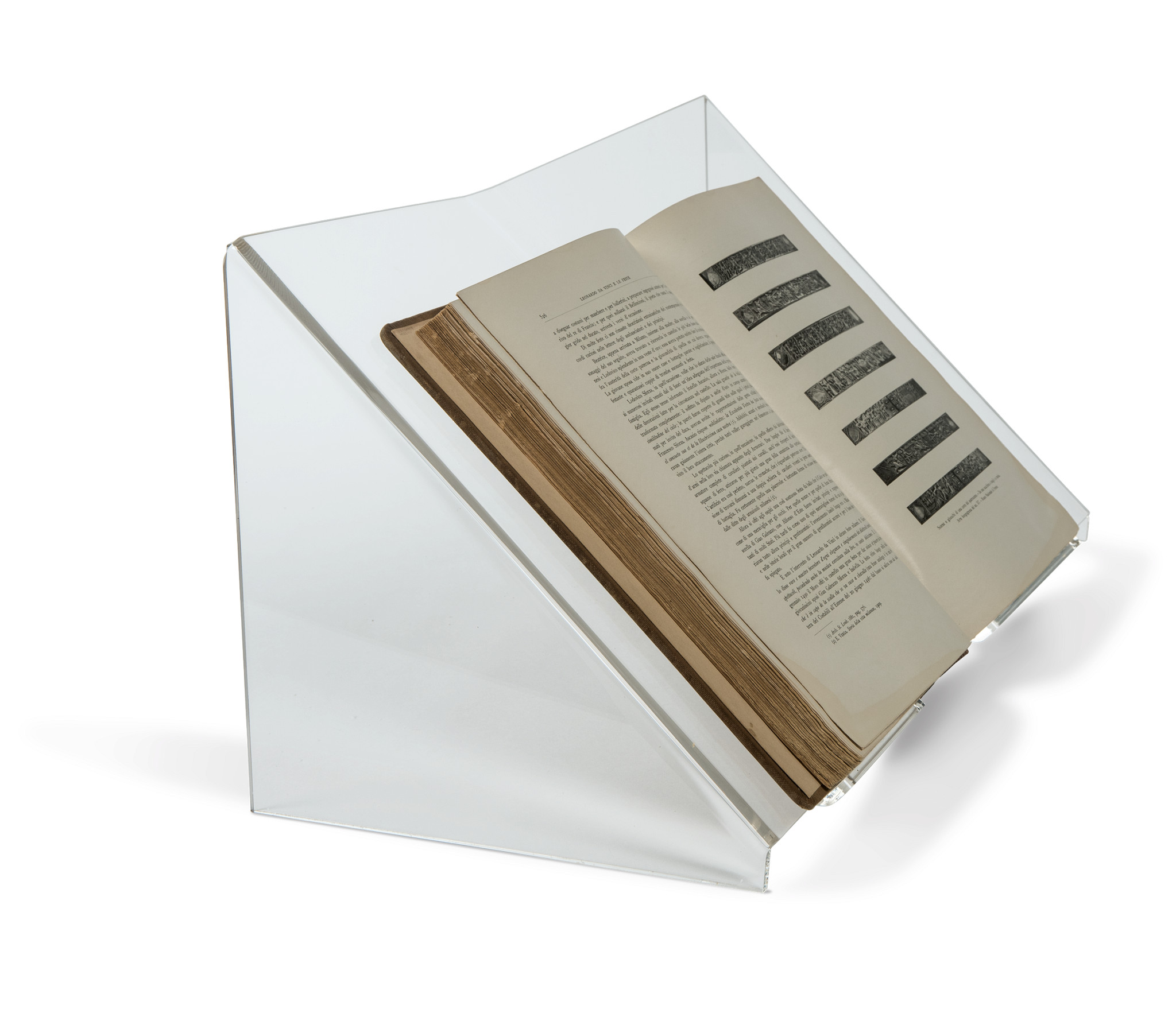 This Acrylic Lipped Open Book Cradle provides safe, nearly invisible support for open books on display. The 1 1/2"W flat spine supports the spine of your book while allowing the book to lie flat. The 3/4" bottom retaining lip holds the book firmly in place.