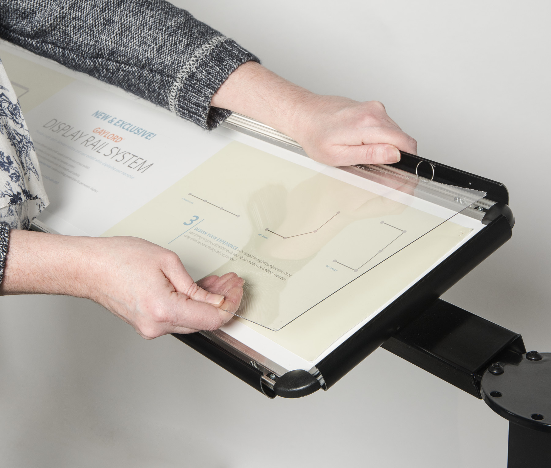 The Gaylord Snap Frame Display Panel makes it a snap to swap out narrative content for changing exhibits. The panel is designed for use with the Gaylord Starter or Add-On Display Rail Systems (sold separately), allowing you to tell the story of your exhibit while creating an unobtrusive barrier.