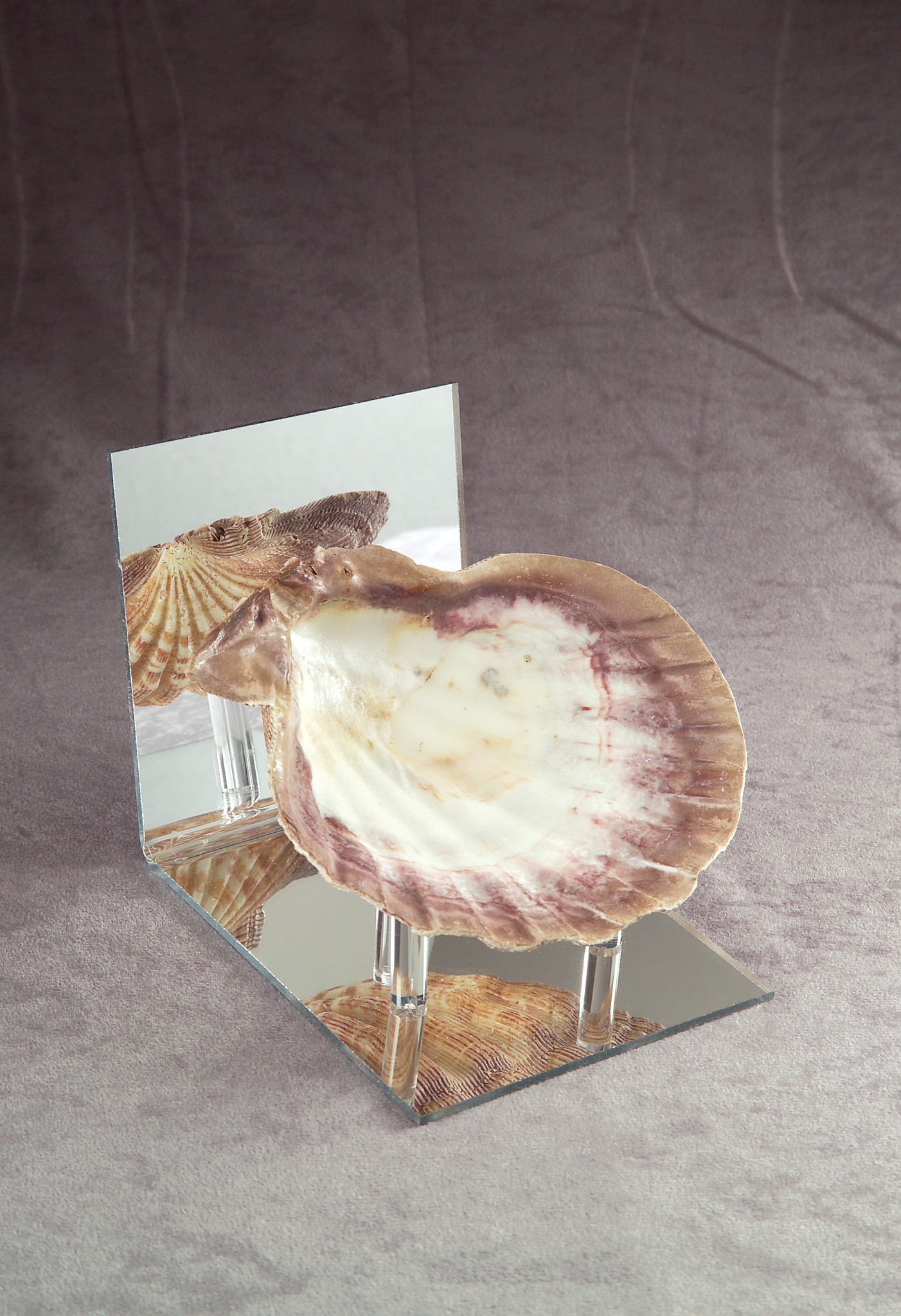 This Mirrored Acrylic Display Base with Pegs reflects the back and base of an object to show more detail. The angled display is ideal for viewing fossil pieces, small ceramics and much more.