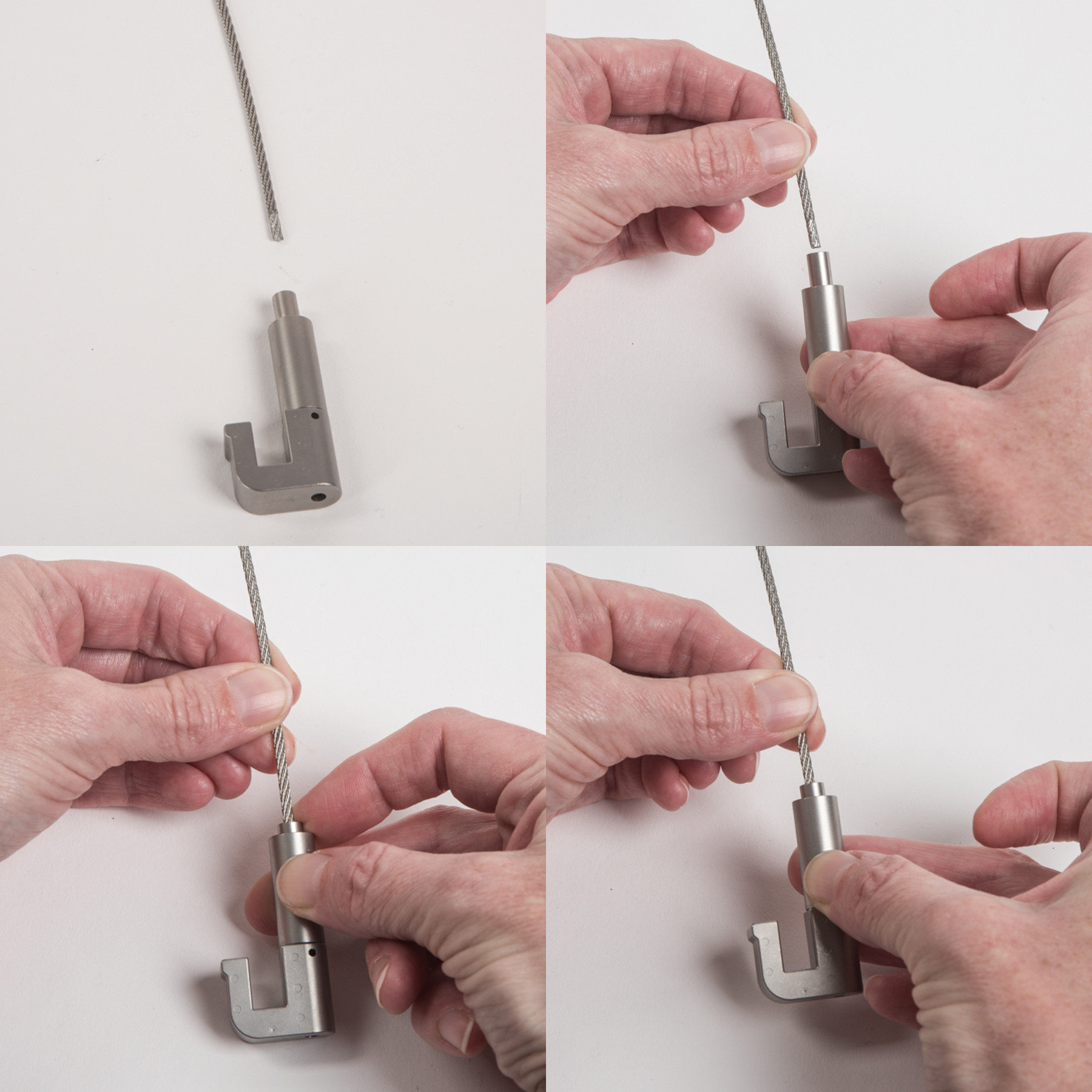 Use this Takiya Traditional Low Profile Hook for Medium & Heavy-Duty Cable with the Traditional Art Hanging Wall Track and Low Profile Large Art Hooks with Cables with a soldered and sanded end. Designed in Japan, each piece of this simplified system is manufactured to the highest quality standards required by museums and galleries around the world. The hook connects securely to the wall track with a twist. Insert the soldered wire end into the base of the track hook. A ball-bearing mechanism inside the track hook locks the cable in place.