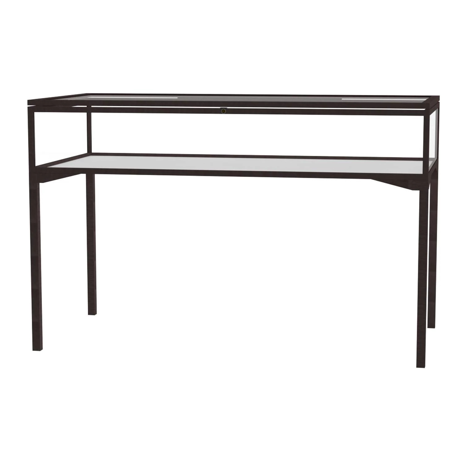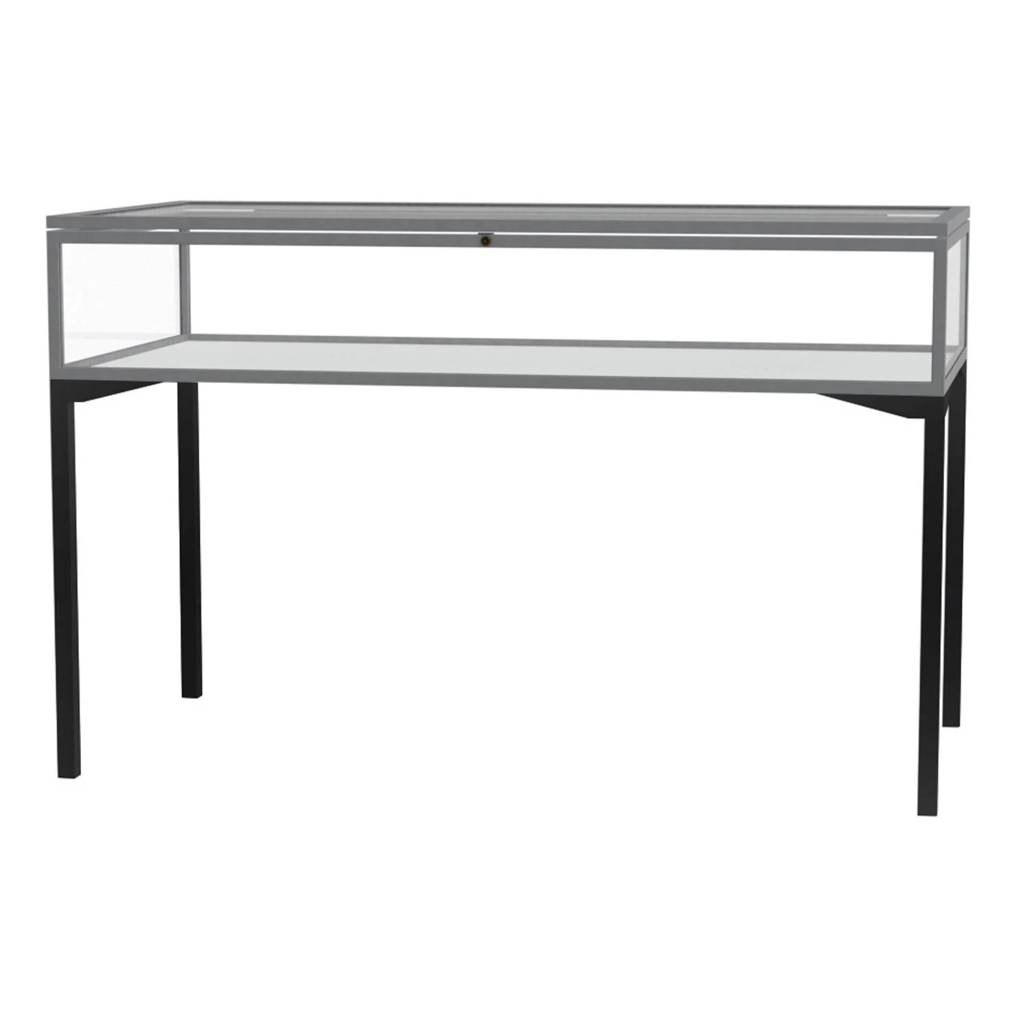 Arrange artifacts or photos in the Waddell Keepsake Table Leg Exhibit Case with Hinged Lid. The table base style includes slim black powder-coated steel tube legs, an aluminum frame and a white laminate deck for a traditional look. Access to the interior is through the hinged lid that locks for security.