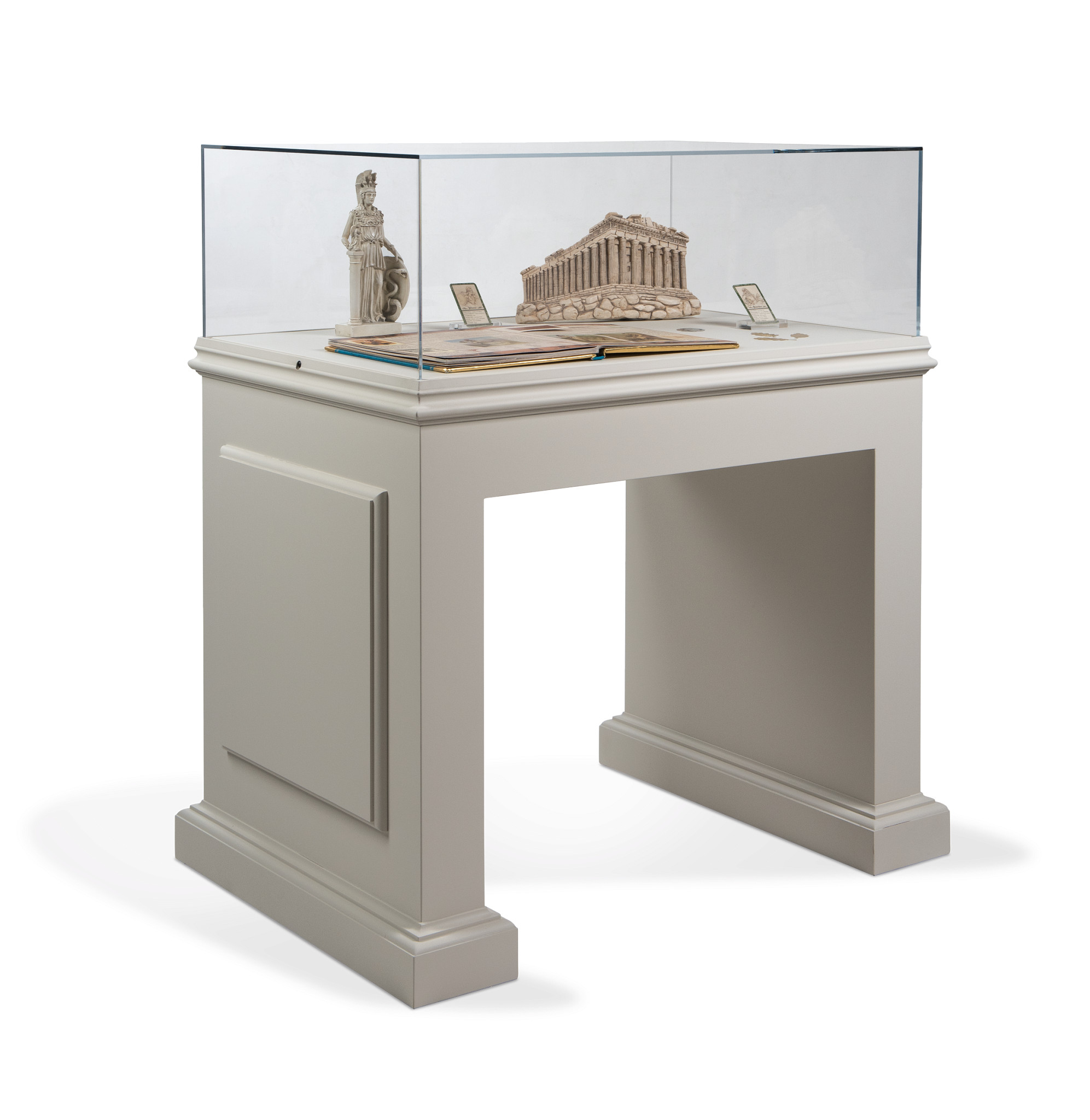 The traditional raised panels and molding of the Gaylord Archival® Splendor™ Glory Panel Leg Exhibit Case blend with the décor or architecture in virtually any room to provide the perfect complement to your display. Panel legs add an elegant aesthetic to any exhibit space and provide an open feel. Choose from hundreds of paint swatches to match your exhibit space or to add an attention-grabbing burst of color. The flawless acrylic vitrine provides a clear view of your display pieces and secures to the archival-quality deck with screws to safeguard your valuable items.