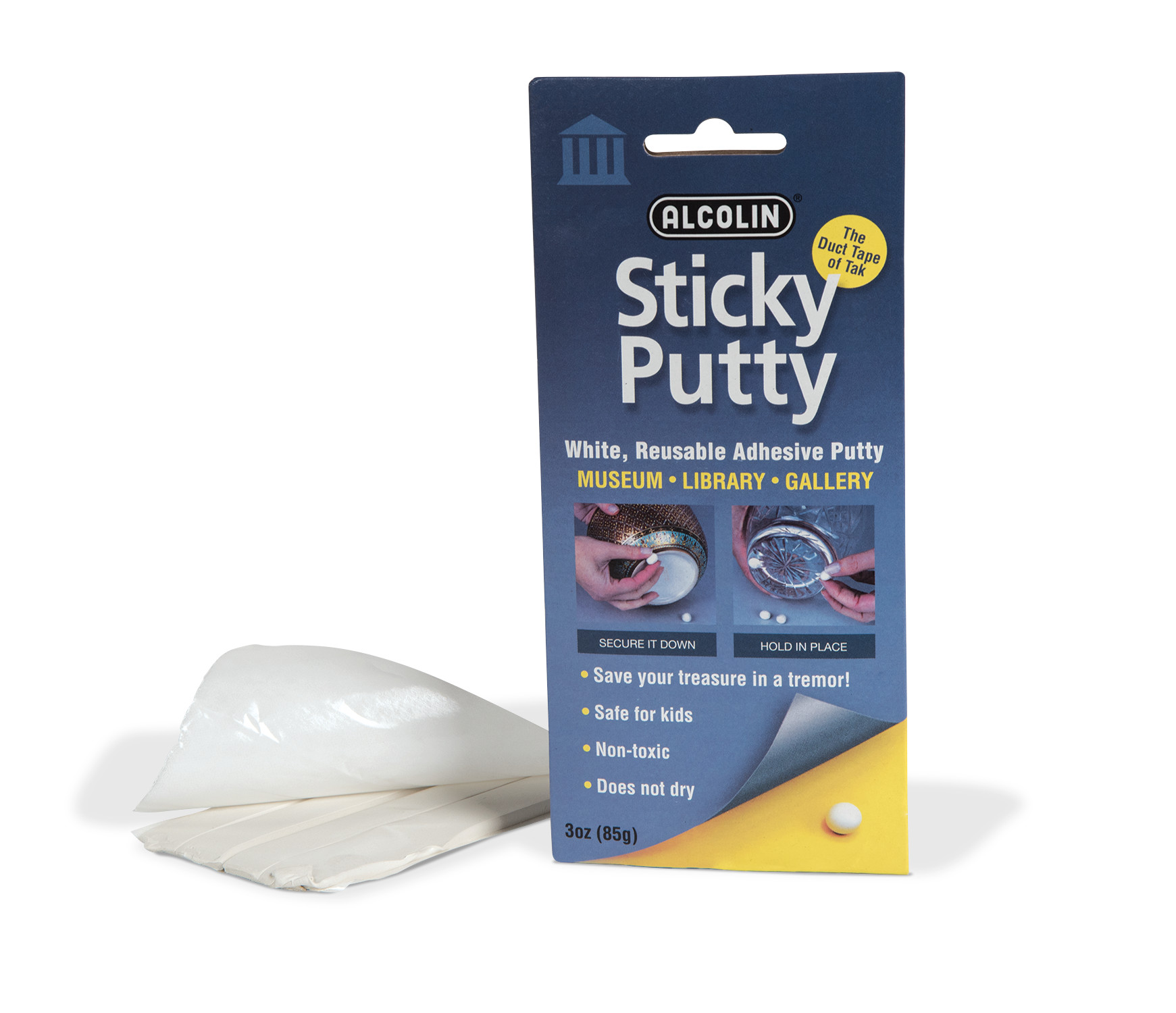 Replace your damaging tape, glue, tacks and staples with Alcolin Museum Sticky Putty. This removable, reusable and nontoxic putty is perfect for temporary mounting of posters, maps and other decorations.
