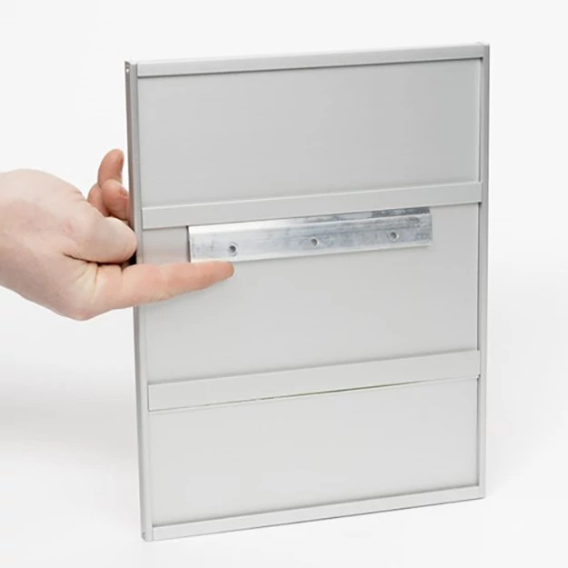 - Allows for mounting of signage plates to wall