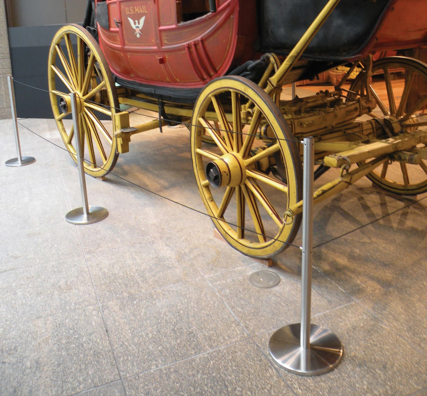 Use this Q-Cord™ Museum Barrier with Dual Retractable Cords to queue and direct visitors through your exhibit space or encourage visitors to keep their distance from valuable artifacts. The two 7-foot elastic cords fully retract into the 39" high stanchion. This freestanding barrier's lower cord is 19.75" off the floor, making it ADA compliant. Add a freestanding receiver barrier or wall terminator (both sold separately) to end a line of barriers.
