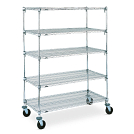 Increase your storage efficiency on the move with the Metro Super Adjustable Mobile Wire Shelving Rack. Constructed from heavy-gauge carbon steel, the open wire design minimizes dust accumulation and allows for greater air flow. The unique corner release system makes it easy to change shelf levels fast and easy without the need for tools. Four 5" rubber swivel casters allow for maximum maneuverability.