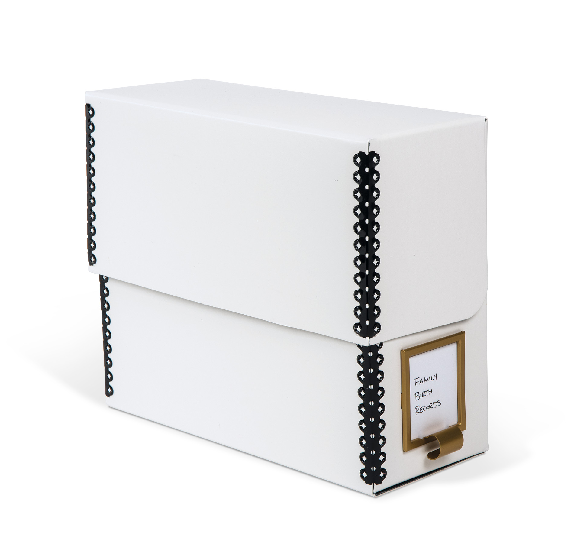 This Gaylord Archival® DuraShield™ Flip-Top Document Case with Label Holder provides safe storage for documents, pamphlets and photos. Our DuraShield protective coating repels water and resists fingerprints and abrasion.