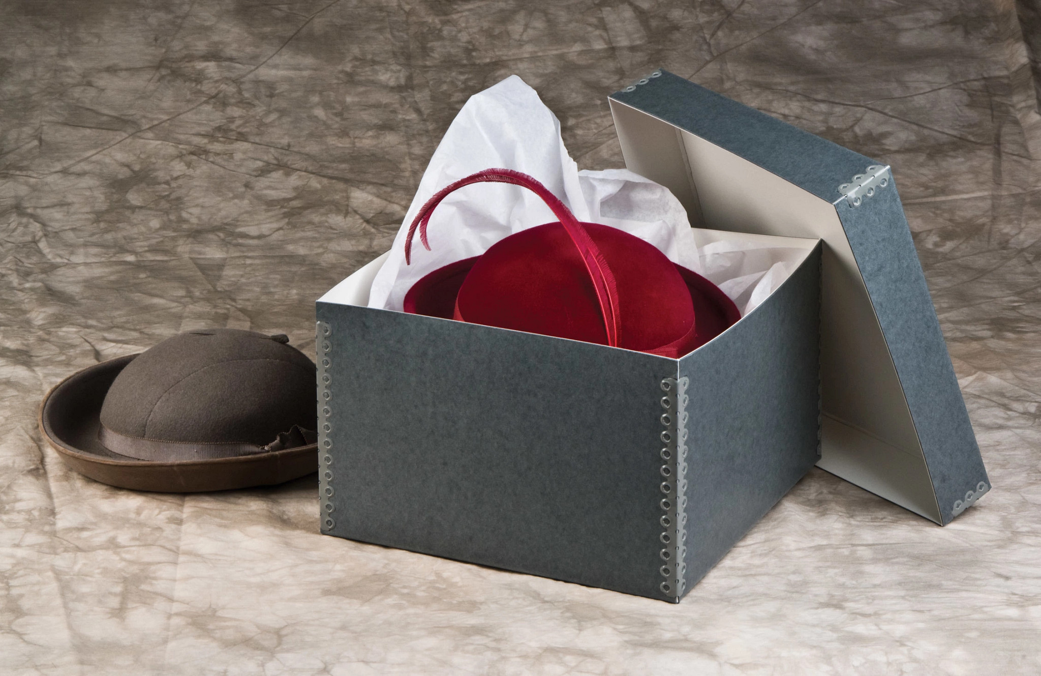 Protect hats against crushing during storage with our Gaylord Archival® Barrier Board Lid Hat & Artifact Box. It features metal edges that strengthen and stabilize the box and a 2" board lid that shields contents from harmful UV light.