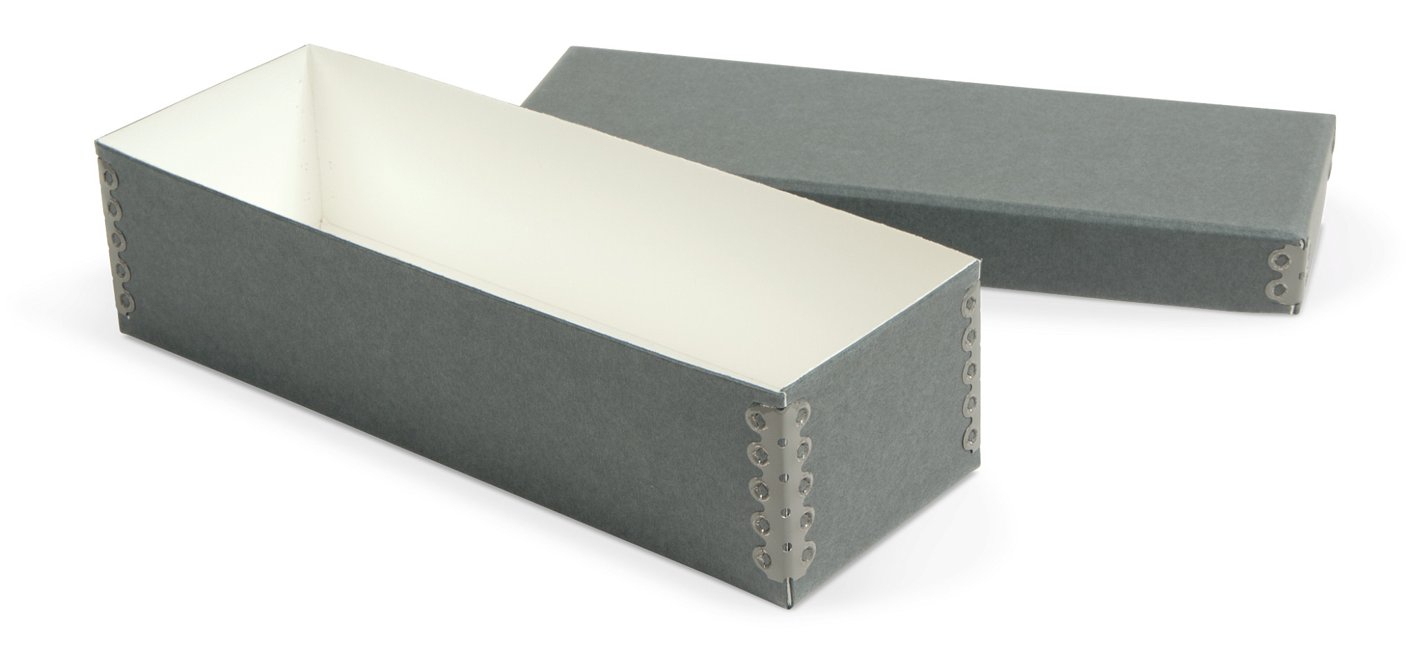 Keep your trading cards clean, safe and well organized in this Gaylord Archival® Trading Card Box. It holds cards with or without sleeves or envelopes. The box edges are reinforced with metal for added durability and support.