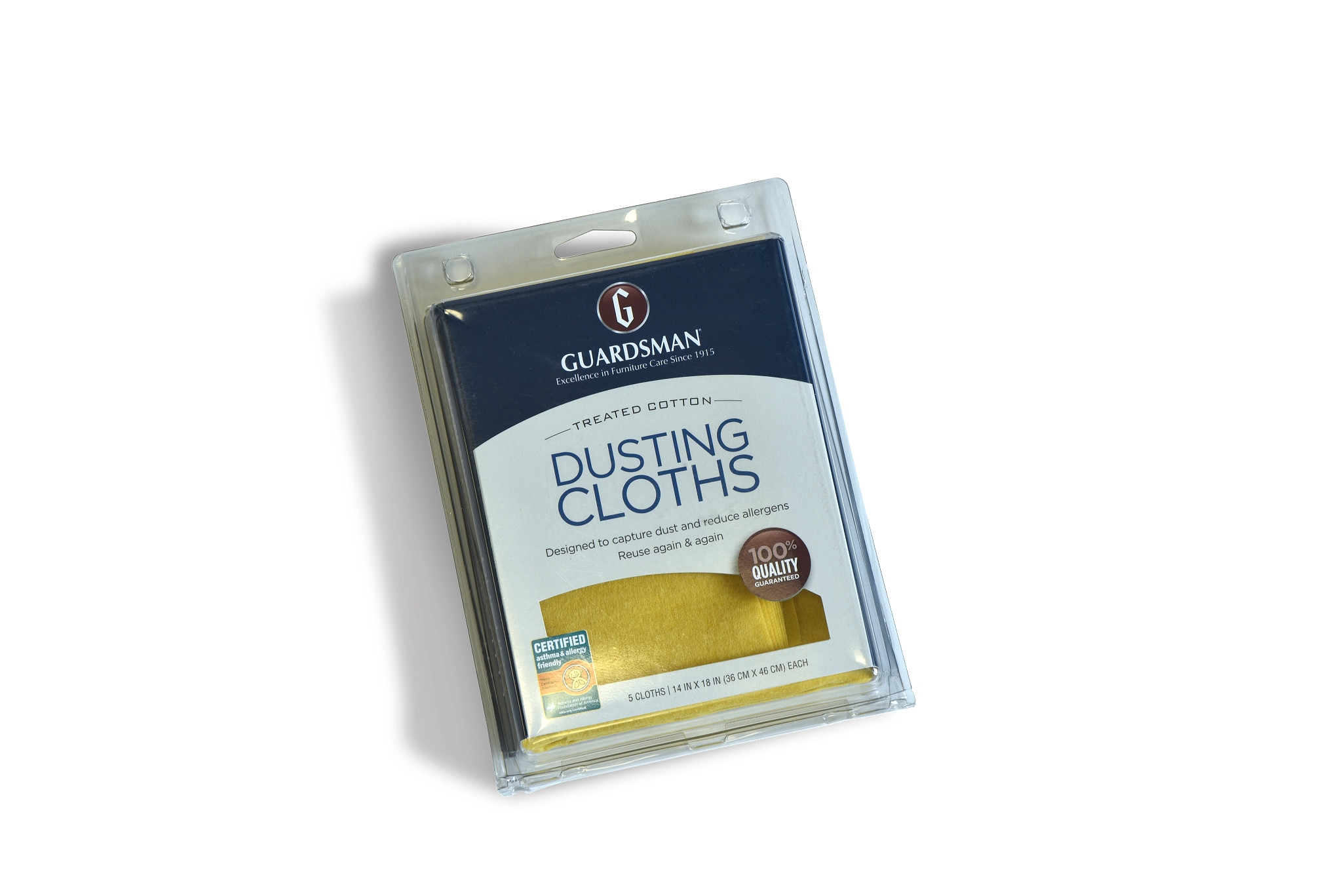 Guardsman Reusable Cotton Dusting Cloths (5-Pack) are the ultimate solution for capturing dust without spray cleaners. The specially treated cotton cloth is gentle on delicate surfaces and leaves behind no dust-attracting residue. It is certified asthma and allergy-friendly by the Asthma and Allergy Foundation of America (AAFA) and Allergy Standards Limited (ASL).