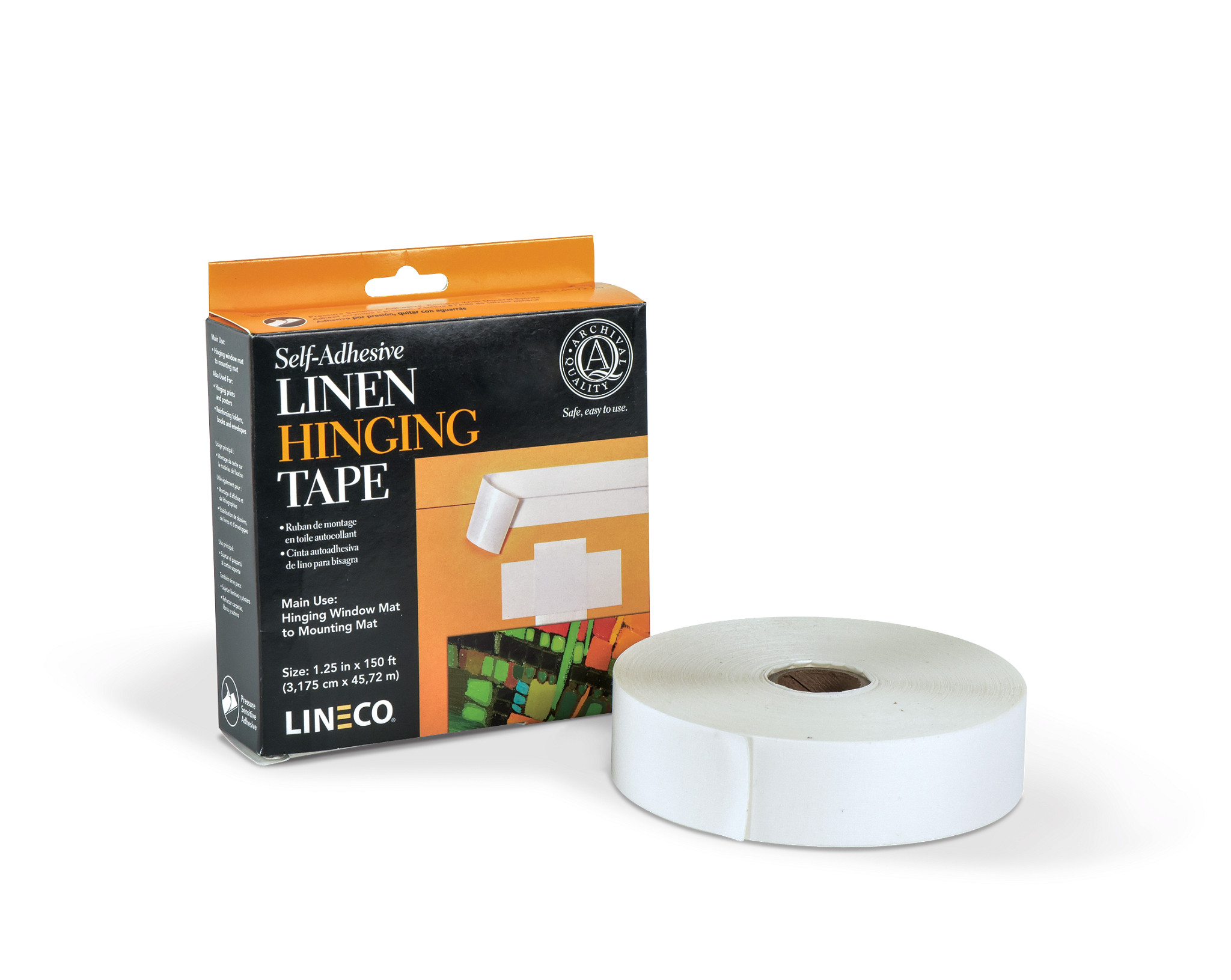 Linen Hinging Tape (50 yds.) is excellent for hinge repair and hinging mats. The thin but very strong linen is coated with pressure-sensitive acrylic adhesive that is pH neutral and nonyellowing.