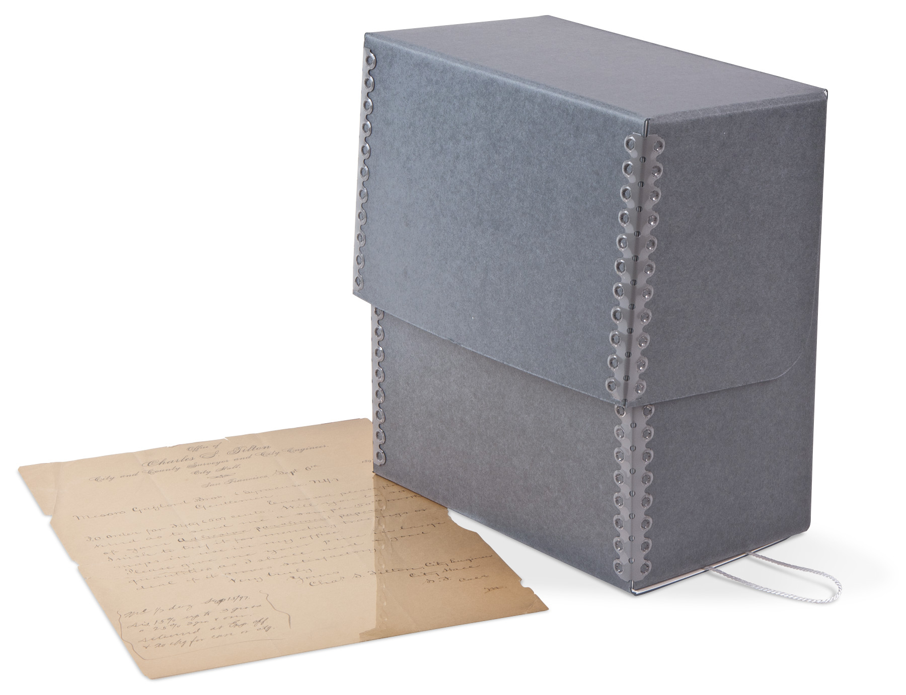 Keep important deeds protected and organized in our Gaylord Archival® Blue/Grey Barrier Board Flip-Top Deed Box. The flip-top makes access easy, and the pull-string helps you retrieve the box from a shelf. Metal edges add strength to the durable barrier board.