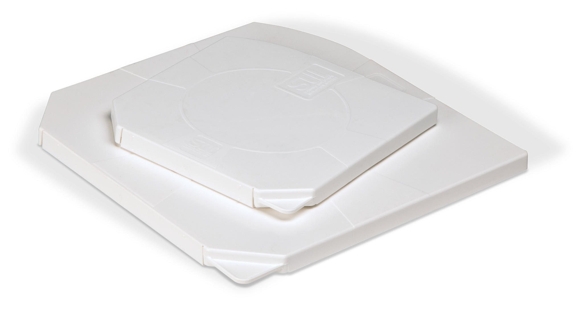 The STIL Polypropylene Clamshell Audiotape Box stores a reel-to-reel 1/4" audiotape. The white, one-piece molded box is fully hinged and has locking levers for added protection. The stabilizing system and grip at the bottom of the box make the container stand upright for ideal storage. A universal hub and core accommodate all audio reels.