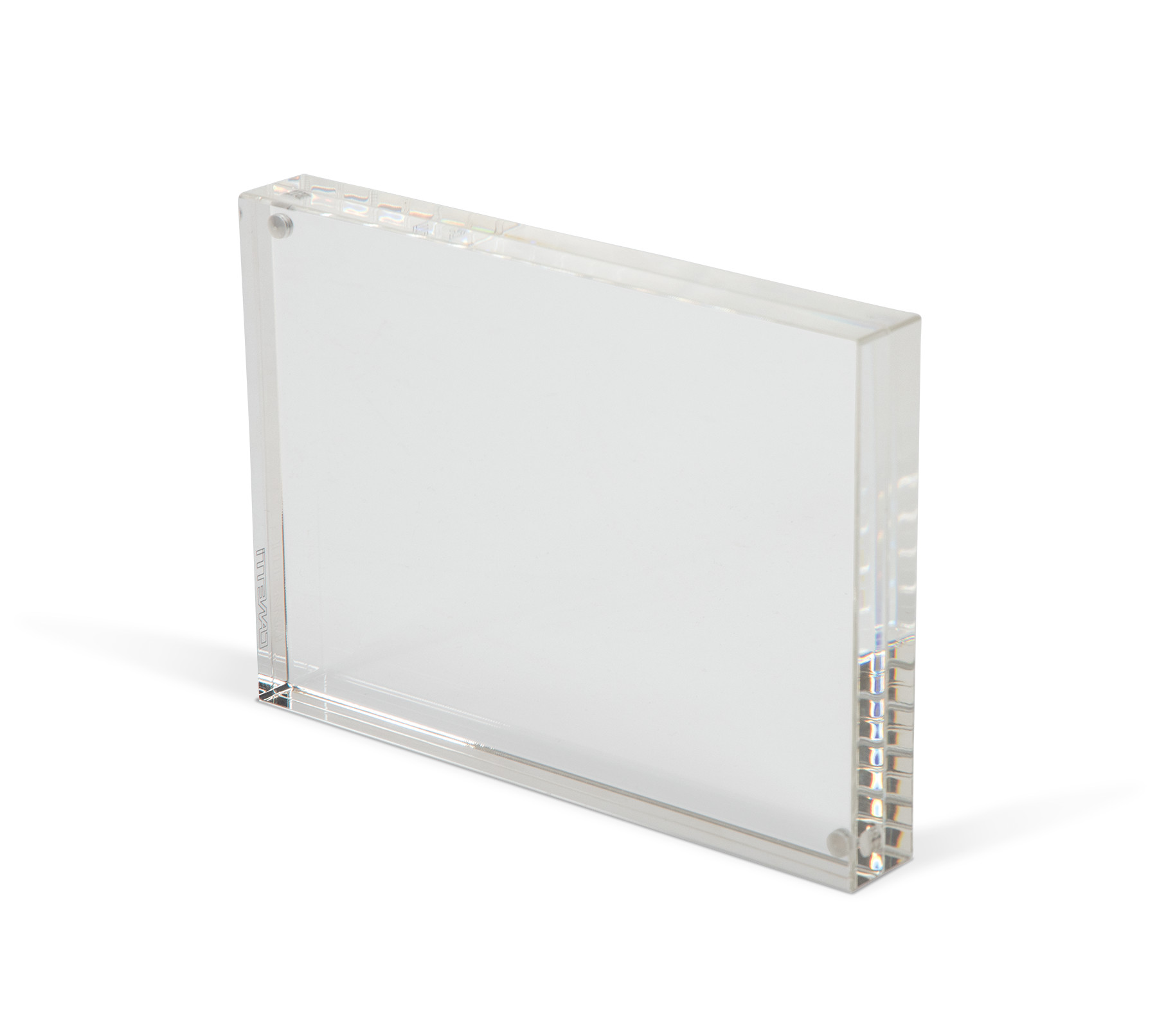 Display your photographs with the Canetti Original Acrylic Magnetic Frame. Tiny magnets hold the two crystal clear, thick acrylic panels together, securing your photo inside. This versatile and simple frame is perfect for tabletop display.