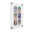 Safely display your favorite trading cards with this Gaylord Archival® League Trading Card Wall Display for 6 Cards. With a solid acrylic back panel and a UV-filtering acrylic front panel, this frame kit creates a borderless display that protects your valuable cards from damage caused by light. Each frame comes with a mat with six 2 1/2 x 3 1/2" cut-outs to hold your trading cards in place. 3/4" brushed stainless steel stand-offs hold the whole thing together. Can be mounted to display cards horizontally or vertically.
