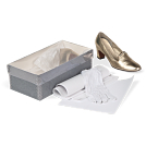 Our Gaylord Archival® Blue/Grey Barrier Board Clear Shallow Lid Shoe Preservation Kit has everything you need to safely store vintage shoes. The clear lid provides an instant view of contents without opening the box. The box features metal edges for reinforcement and includes acid-free, unbuffered tissue paper and cotton gloves.