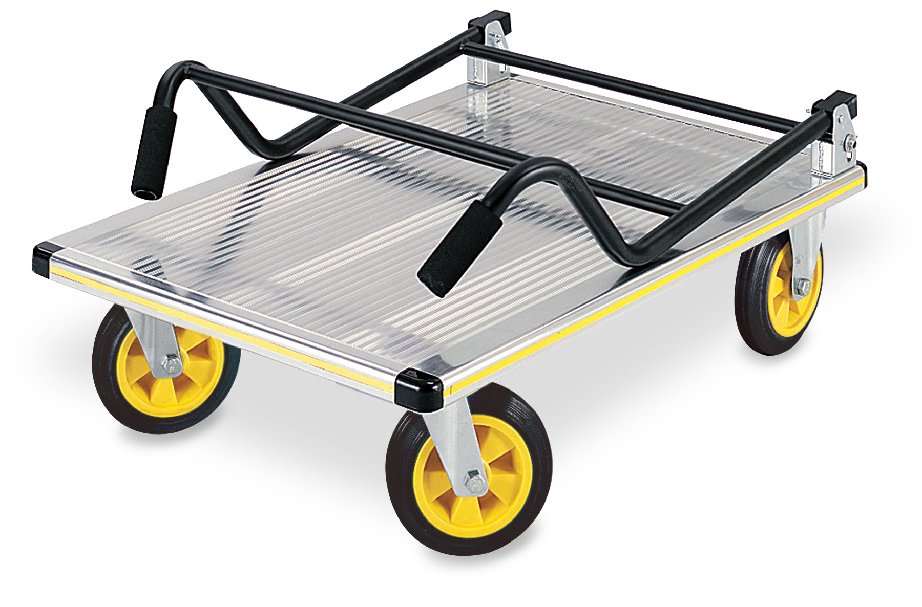 With a spacious 24W x 39"D deck and lightweight aluminum construction, the Stow-Away® Platform Truck from Safco® makes moving heavy, bulky loads easier. Rugged 7" rubber tires are dependable and easily installed. The truck features a quick-release handle that folds flat for storage.