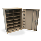 - Door locks to keep contents secure and features ID card slots for quick identification