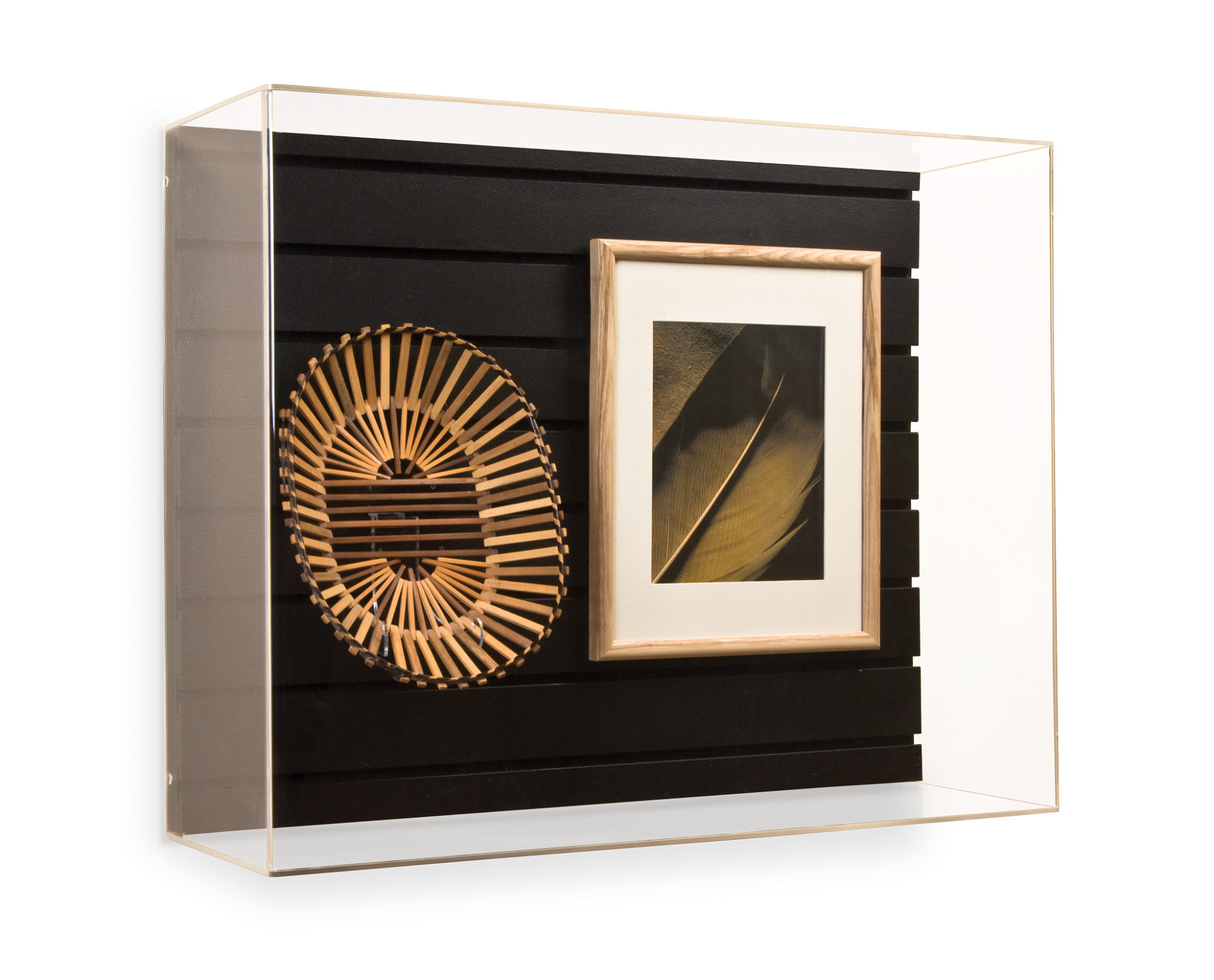 • Clear acrylic vitrine with finished beveled edges attaches to the back with security screws
