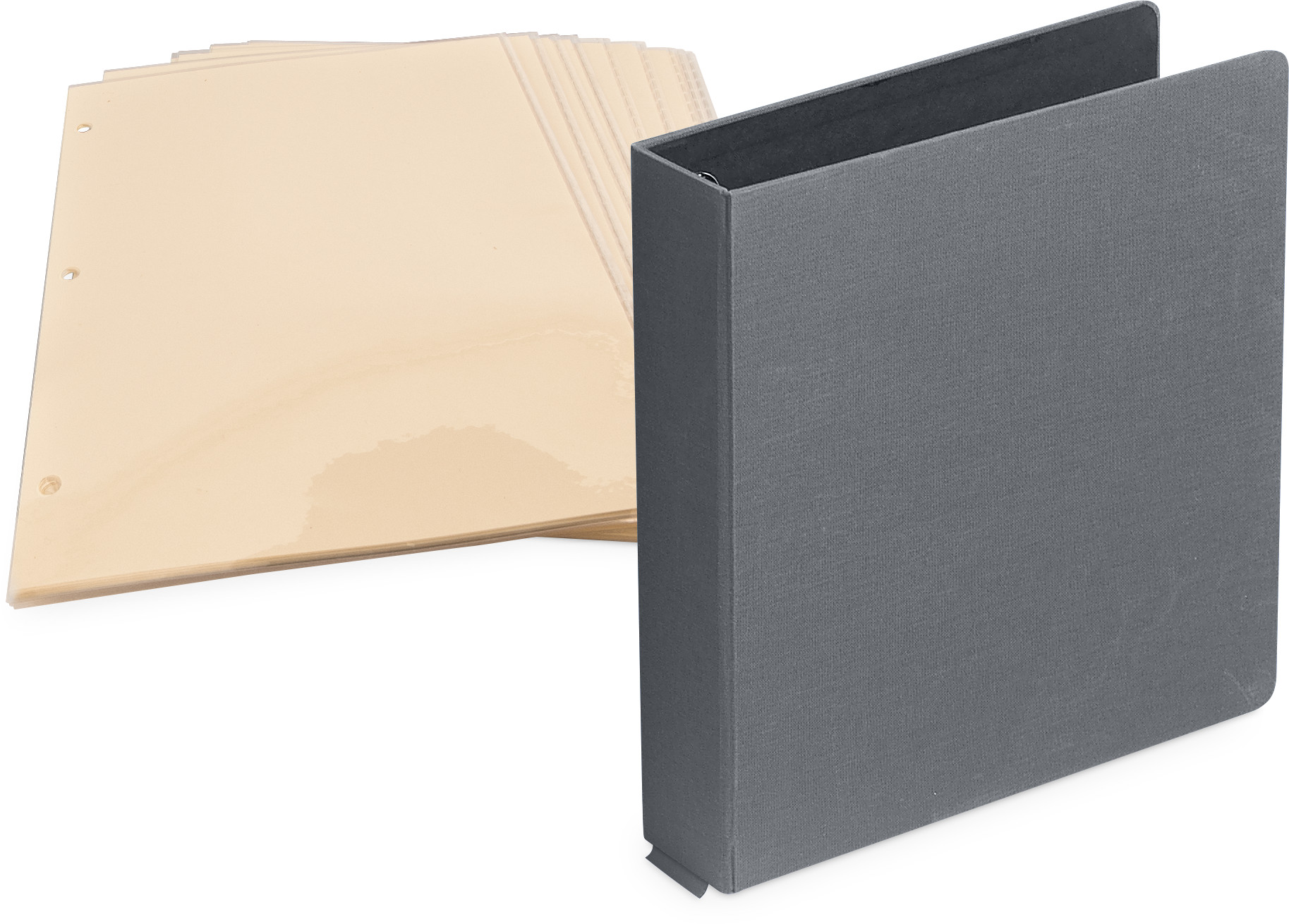This 1" D-Ring Buckram Photo Preservation Album with 35 Cream Pages & Protectors stores and protects photos for generations to come. The silver grey textured cloth cover is attractive and easy to clean, and the included pages are buffered and acid-free.